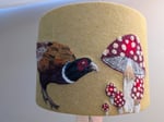 30cm lampshade featuring a needle felt Pheasant on a mustard felt background.